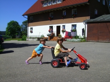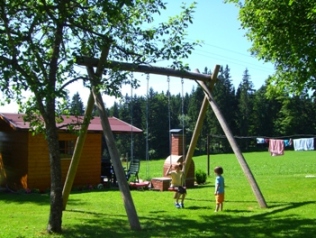 Für unsere kleinen Gäste sind Schaukel, Sandkasten mit Spielfahrzeugen,